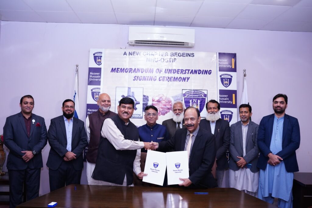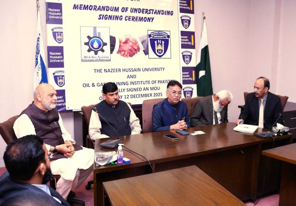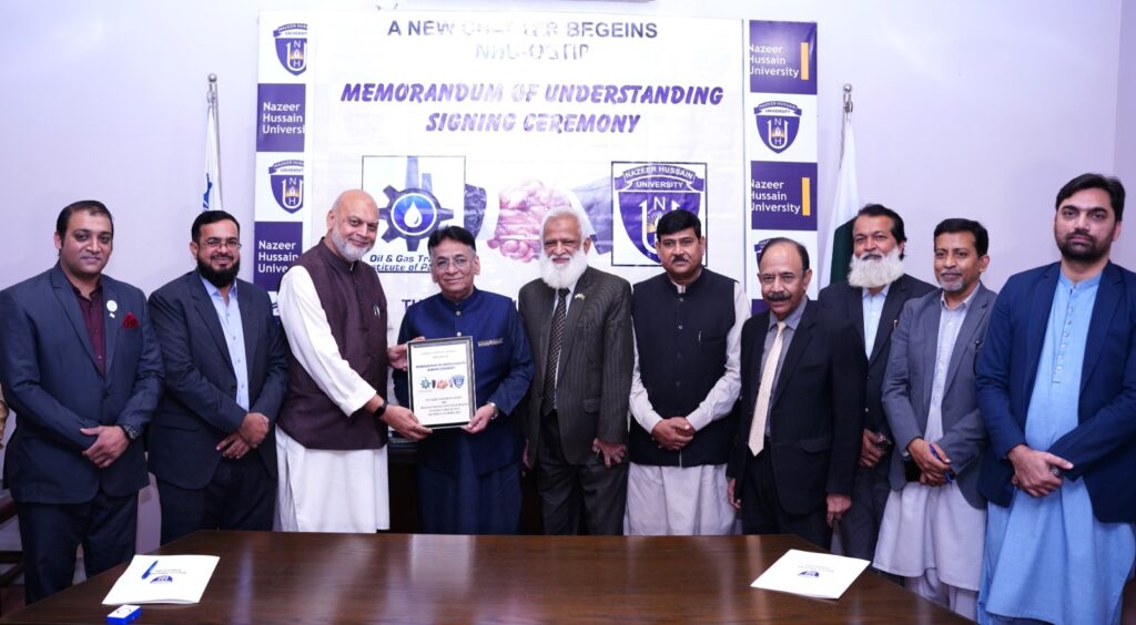 Nazeer Hussain University has proudly signed an MoU with the Oil & Gas Training Institute of Pakistan to enhance practical learning, professional training, internships, and career development opportunities for our students. This collaboration marks a significant step toward preparing industry-ready graduates and fostering innovation through knowledge exchange.